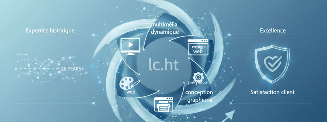Depuis plus de deux décennies, lc.ht s’est imposée comme une figure de proue et une référence de l'excellence dans les secteurs de l'infographie, de la conception graphique et du pré-presse. Cette longévité témoigne d’une capacité d’adaptation constante face aux évolutions technologiques. Aujourd'hui, notre champ d’expertise englobe une vision globale de la communication : du multimédia dynamique au design web ergonomique, en passant par l’ensemble des services de communication visuelle. Chaque projet confié à lc.ht bénéficie de ce bagage historique unique, garantissant une maîtrise technique irréprochable sur tous les supports, qu'ils soient numériques ou imprimés.